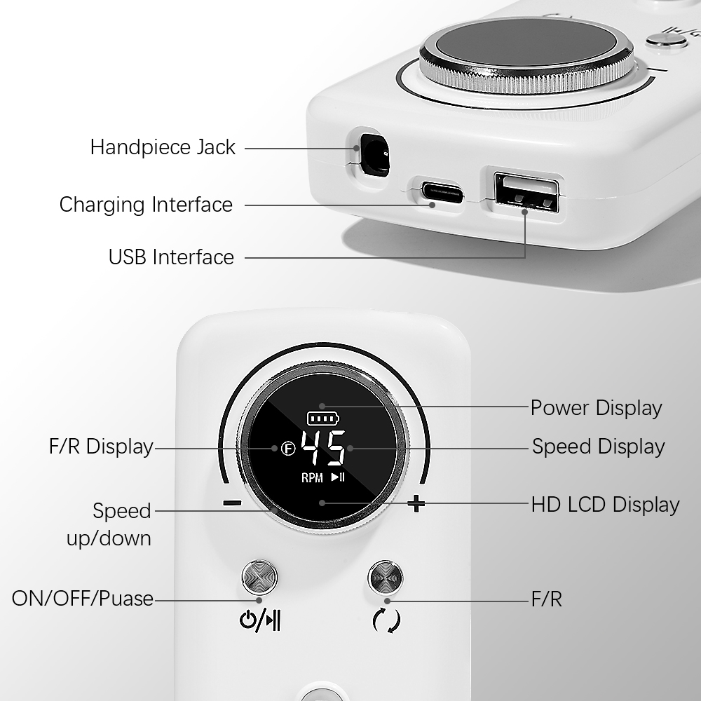Torno Para Uñas Profesional Rc005 45.000rpm Inalámbrico